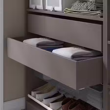 Отличное решение для хранения сложенной одежды и аксессуаров, чтобы в гардеробе ПАКС всегда был порядок.