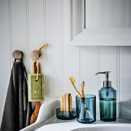 На хранение предметы набора можно для экономии места ставить один в другой. В мыльницу также можно положить украшения и другие мелочи, которые так легко теряются. В набор входит: 1 дозатор для жидкого мыла, 340 мл (диам.