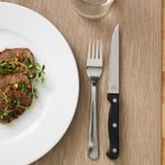 Нож с зазубренным (серрейторным) лезвием легко и плавно режет мясо. Удобно использовать в качестве столового ножа.