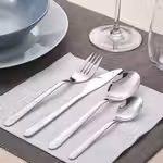 Столовые приборы изготовлены из нержавеющей стали — прочного и простого в уходе материал.