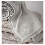 Хлопок – мягкий и комфортный для ребенка материал. Мягкое и уютное. Одеяло с вышитым слоником и мягкой вязанной кромкой. Трикотаж. Длина: 90 см. Ширина: 70 см. 100% хлопок.