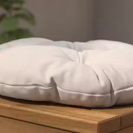 Эта подушка идеальна для садовой мебели, так как экологичный метод окрашивания ткани обеспечивает устойчивость цвета даже под воздействием солнечных лучей.