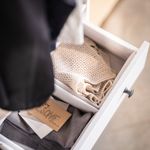 Декоративный орнамент на внутренней стороне ткани придает решению для хранения стильный облик.
