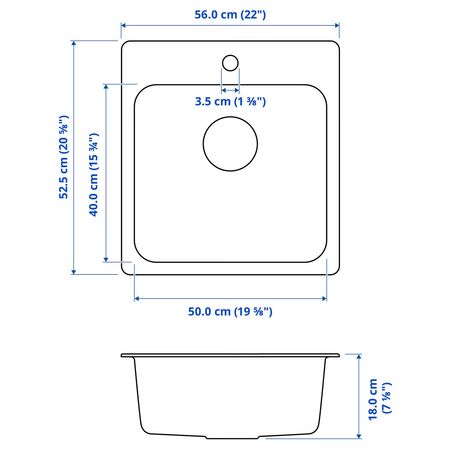 VATTUDALEN 691.581.68 Одинарная врезная мойка с крылом, нержавеющ сталь 69x47 см
