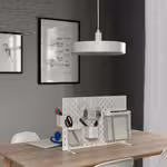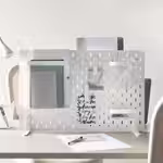 С помощью этой отдельно стоящей перфорированной панели вы можете организовать место для размещения мелочей, которые должны быть под рукой, без сверления отверстий в стене.
