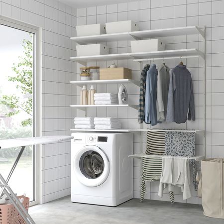 Открытый гардероб обеспечивает доступ к вещам с любой стороны, а благодаря съемной полке пространство для хранения можно регулировать.