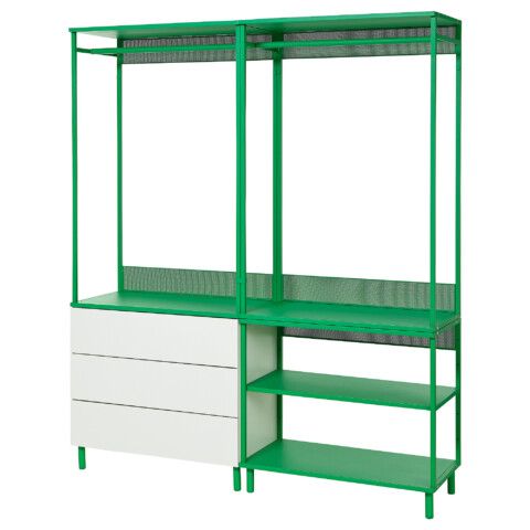 Особенности «PLATSA ПЛАТСАA ПЛАТСА открытый гардероб с 3 ящиками, белый, Fonnes зеленый, 160x42x191 см» заявленные производителем IKЕА: