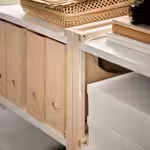 Универсальный стеллаж EKENABBEN с минималистичным дизайном позволяет видеть всё, что хранится на открытых полках, но вы можете подобрать корзины, чтобы спрятать в них всё необходимое.