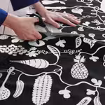 Яркие цвета и оригинальная деталь, из-за которой хочется посмотреть ещё раз, — вот что получается, когда ткань разрабатывают два дизайнера, любящие кошек.