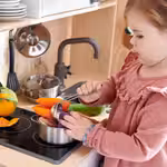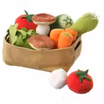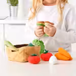 Эти сделаны из мягкого материала, их можно стирать, поэтому ваш малыш сможет снова и снова готовить для своих воображаемых гостей самые разные закуски и салаты.