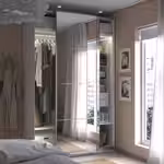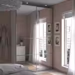 Для раздвижных дверей не нужны ручки, что придает дизайну гардероба лаконичный облик, позволяя сочетать его с мебелью в разных стилях.