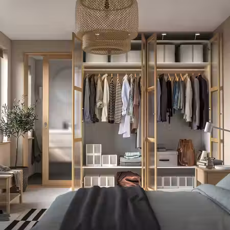 В этом гардеробе найдется отделение для всего на свете. Он подходит для тех, кто привык точно знать, где лежит каждая вещь независимо от ее размера, и при этом сохранять хороший обзор. Демонстрируйте свой идеальный порядок всем