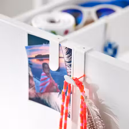 Практичное решение с крючком для одежды или сумки и зажимом для фотографий и рисунков, которые придают интерьеру индивидуальность.