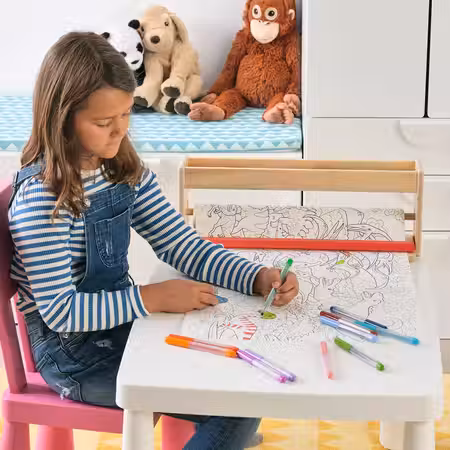 Столешницу и ножки можно прикрепить к стеллажу КАЛЛАКС при помощи фурнитуры ИНЛЭГГ.