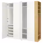 Каркас гардероба/дверь/плавно закрывающиеся петли/штанга платяная/сетчатая корзина/направляющие для корзин/полка/дополнительный модуль