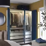 В гардеробе ПАКС вы сможете хранить много вещей на малой площади. Здесь есть платяные штанги для короткой и длинной одежды на плечиках, вентилируемые корзины, а также ящики и выдвижные полки, пространство которых можно оптимизировать с помощью
