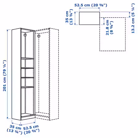 Можно сочетать с каркасами PAX и внутренними органайзерами KOMPLEMENT белого и серо-бежевого цветов.