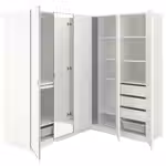 Каркас гардероба/ящик, панель с филёнкой/сетчатая корзина/выдвижная вешалка для брюк/направляющие для корзин/полка/Дополнительный Угловой модуль для гардероба/4 полки/дверь/плавно закрывающиеся петли/плавно закрывающиеся петли для углового секции/штанга платяная/разделитель для каркасов
