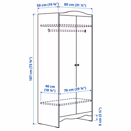 На платяную штангу можно повесить примерно 30 рубашек на плечиках.