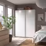 Для раздвижных дверей не нужны ручки, что придает дизайну гардероба лаконичный облик, позволяя сочетать его с мебелью в разных стилях.