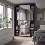 Если вы хотите дополнить каркас гардероба ПАКС раздвижными дверьми, высота потолка должна быть минимум 242 см.