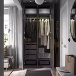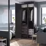 Если вы хотите дополнить каркас гардероба ПАКС раздвижными дверьми, высота потолка должна быть минимум 242 см.