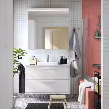 Лаконичный дизайн мебели для ванной серии ХАВБЭКК понравится ценителям спокойствия и простоты.