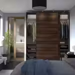 Для раздвижных дверей не нужны ручки, что придает дизайну гардероба лаконичный облик, позволяя сочетать его с мебелью в разных стилях.