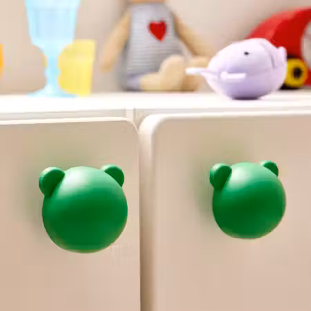 Забавная ручка на дверце шкафа или ящике будет пробуждать воображение, к тому что это простой способ освежить мебель и адаптировать её под ребёнка.