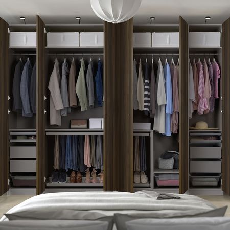 Каркас гардероба/вставка с 4 отделениями/вставка с отделениями/сетчатая корзина/направляющие для корзин/ящик/выдвижная вешалка для брюк/выдвижная полка/вставка для обуви для выдвижной полки/дверь/плавно закрывающиеся петли/штанга платяная