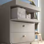 Удобный доступ к подгузникам и одежде благодаря выдвижной полке над верхним ящиком.