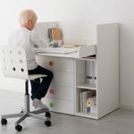 Когда ребенок подрастет, пеленальный стол легко превращается в письменный. Для этого нужно просто опустить столешницу.