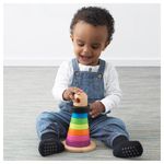Собирая пирамидку, малыш учится различать цвета и размеры. Развивает мелкую моторику и логическое мышление. Рекомендовано для детей от 1 года. В набор входят 1 деревянная основа со стержнем из мягкого материала, 7 колец и наконечник. Высота: 20 см.