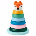 В набор входит: 1 деревянное основание с мягким стержнем, 6 колец и верхушка в виде головы лисы.