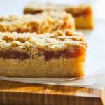 Пирог с марципаном, кусочками яблока и корицей. С топингом в виде крамбла с овсяными хлопьями. Быстрое угощение для гостей — не нужно готовить, просто разморозьте. Еще вкуснее с ванильным кремом.