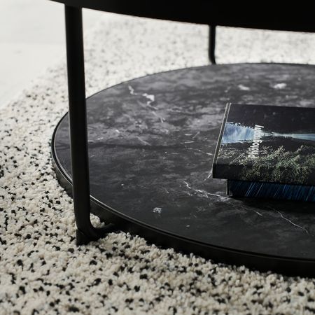 У стола оказалась очень удачная длина — 105 сантиметров, так что он идеально вписался в пространство гостиной между диваном и выступом на стене, даже осталось еще немного места, чтобы поставить торшер.