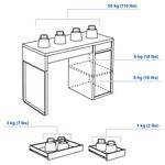 Максимальная нагрузка при равномерном распределении — 50 кг. Не размещайте концентрированный вес более 15 кг на небольшой площади стола.