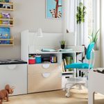Этот многофункциональный письменный стол можно также использовать в качестве пеленального стола.Ящики и полки обеспечивают практичное место для хранения.ВНИМАНИЕ! ОПАСНОСТЬ ОПРОКИДЫВАНИЯ! Незакрепленная мебель может опрокинуться.