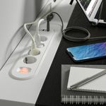 Провода можно убрать в отделение стола с крышкой и провести под столом в лоток для размещения проводов.