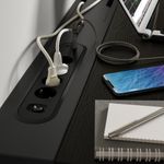 Провода можно убрать в отделение стола с крышкой и провести под столом в лоток для размещения проводов.
