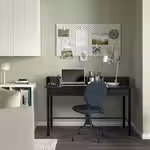 Элегантный стул БЬЙОРКБЕРГЕТ и письменный стол РИДСПЁ с ящиком со стеклянной панелью для записей, в котором можно хранить нужные вещи.