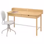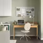 Элегантный стул БЬЙОРКБЕРГЕТ и письменный стол РИДСПЁ с ящиком со стеклянной панелью для записей, в котором можно хранить нужные вещи.