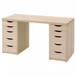 Этот стол занимает мало места на полу, но при этом укомплектован двумя тумбами с ящиками, в которых можно хранить бумаги и другие вещи.