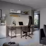 На двух полках достаточно места для бумаги, блокнотов и книг, что позволяет освободить столешницу.