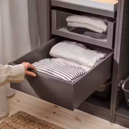 Обустроить внутреннее пространство шкафа помогут элементы серии ХЭЛПА, а организовать порядок за его пределами позволят аксессуары серии ЛЭТТХЕТ.