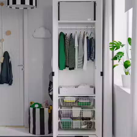 Обустроить внутреннее пространство шкафа помогут элементы серии ХЭЛПА, а организовать порядок за его пределами позволят аксессуары серии ЛЭТТХЕТ.