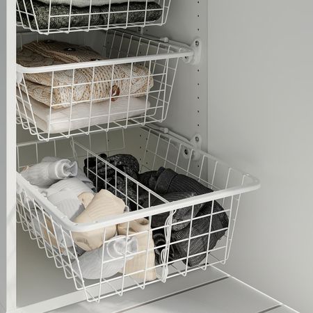 К внутренним органайзерам HJÄLPA относятся рейлинги, корзины, крючки и полки, которые позволяют максимально эффективно использовать пространство для хранения вещей.
