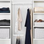 Двойная платяная штанга. На верхнюю штангу можно вешать и короткую, и длинную одежду, нижняя подходит только для короткой одежды.