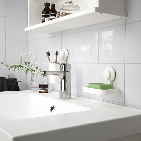 Благодаря аксессуарам серии ТИСКЕН все необходимое в ванной будет под рукой, и при этом вам не придется сверлить отверстия в стене. С помощь присосок вешалки, крючки и держатели будут надежно закреплены на гладкой поверхности, например стекле