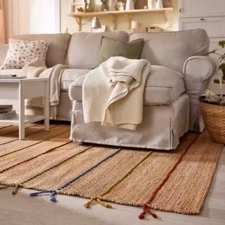 Естественные вариации цвета джута придают каждому ковру уникальность.